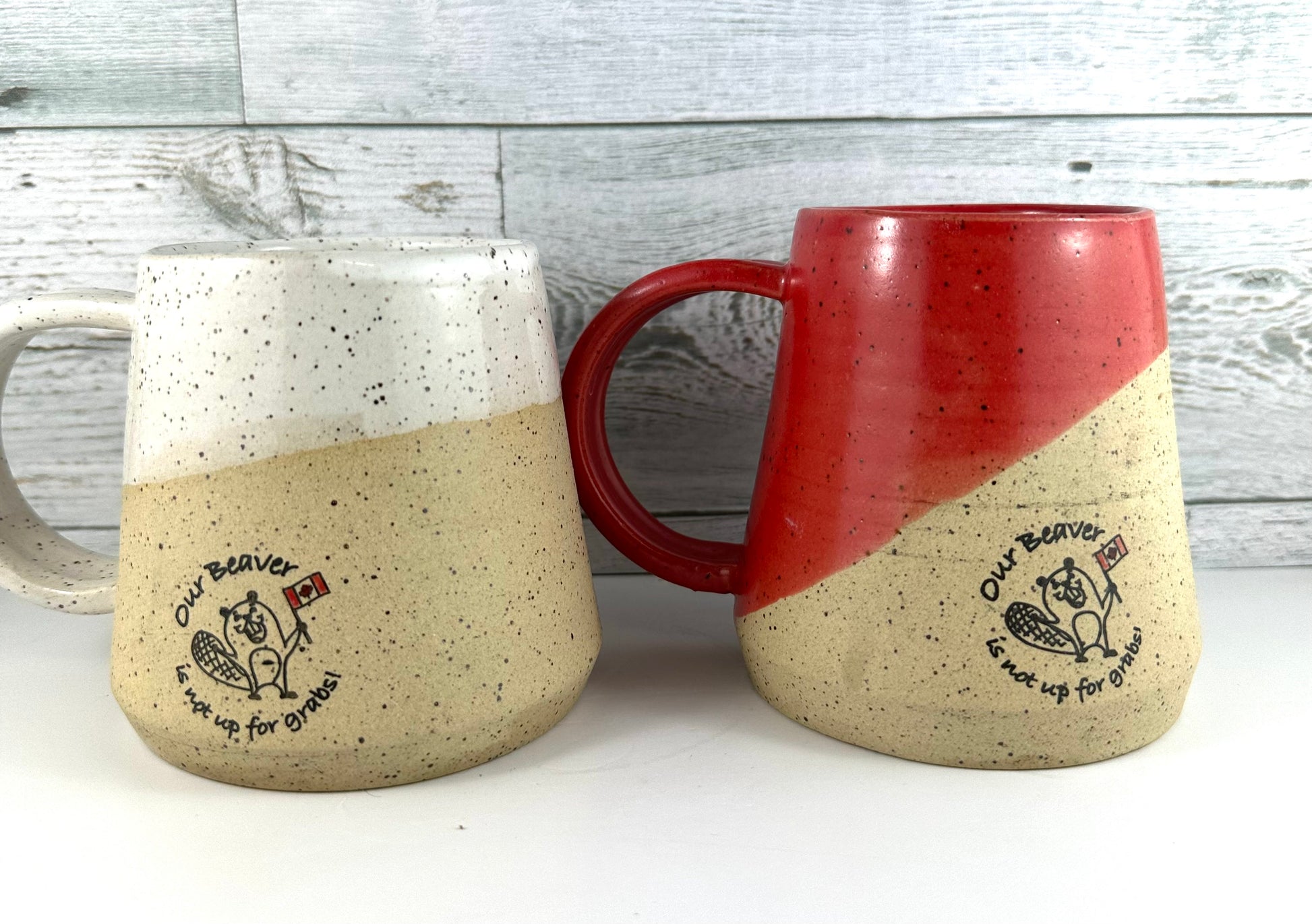 Elevate your sipping experience with our fabulously funky wheel-thrown pottery mug, showcasing a bold and sassy logo of Canada’s beloved unofficial national animal—the beaver! This isn’t just any mug; it’s a ceramic tribute to all things Canadian, lovingly crafted on the pottery wheel.